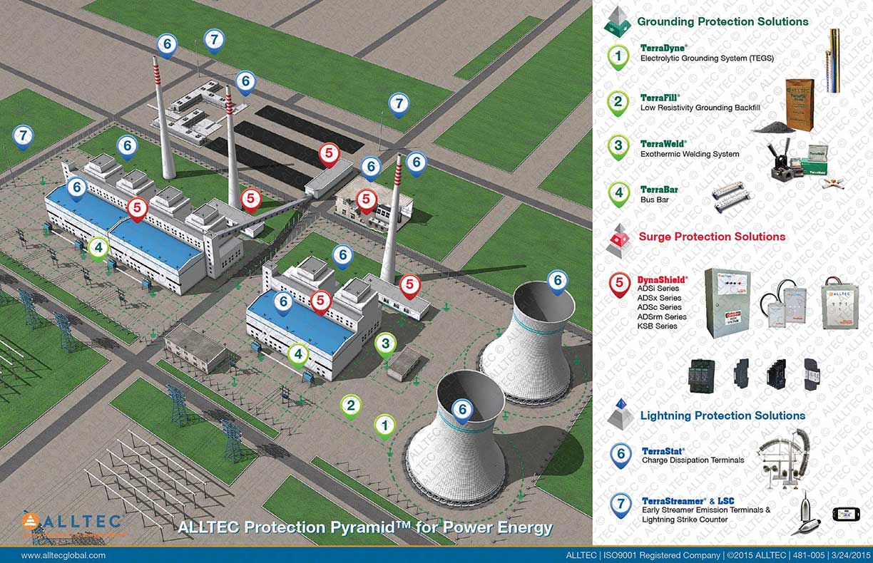 Protección contra rayos, puesta a tierra y protección contra sobretensiones para energía de servicios públicos